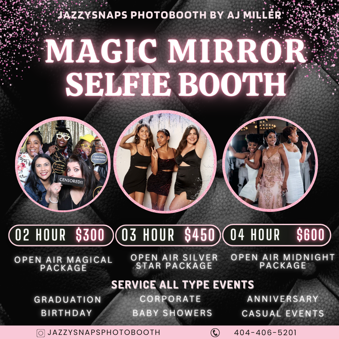 At JazzySnaps Photobooths, we are dedicated to “Capturing Life… as it Happens.” We understand the value of connections and preserving memories shared with loved ones. We believe in adding a personal touch to every aspect of your experience. Our company brings a blend of fun, familial warmth, and a hint of Jazz to every occasion. Get ready to dive into the heart of entertainment with one of our cutting-edge 360 photo booths or our sleek Magic Mirror selfie booth experience; that will elevate a whole new dimension of smiles and excitement to your event....